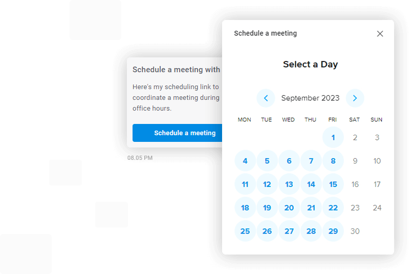 With the Calendly integration, scheduling meetings with your site visitors is a breeze. Your leads and customers can easily book appointments directly from the chat widget or the tickets area.